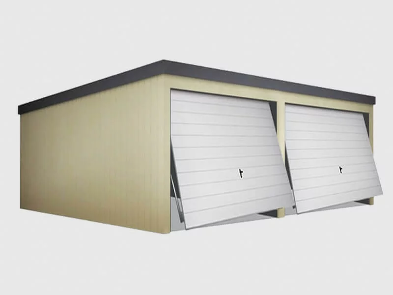 Statt mit zwei Schwingtoren, können Sie die verzinkte Doppelgaragen mit zwei Zweiflügeltoren bestellen.