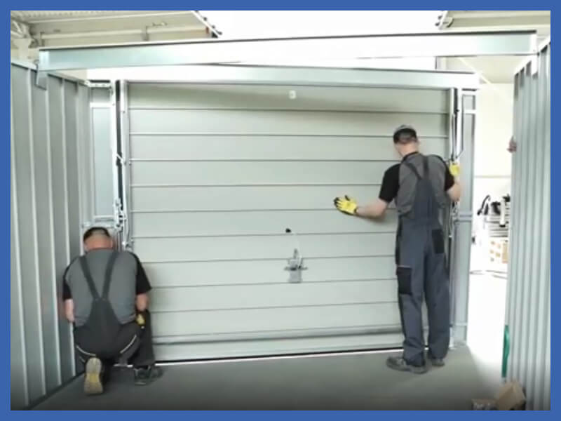 Schwingtor im Sektionaltor Design mit Führungsschienen, ohne Schwelle mit einem Bürstensystem, mit horizontalen Paneelen.