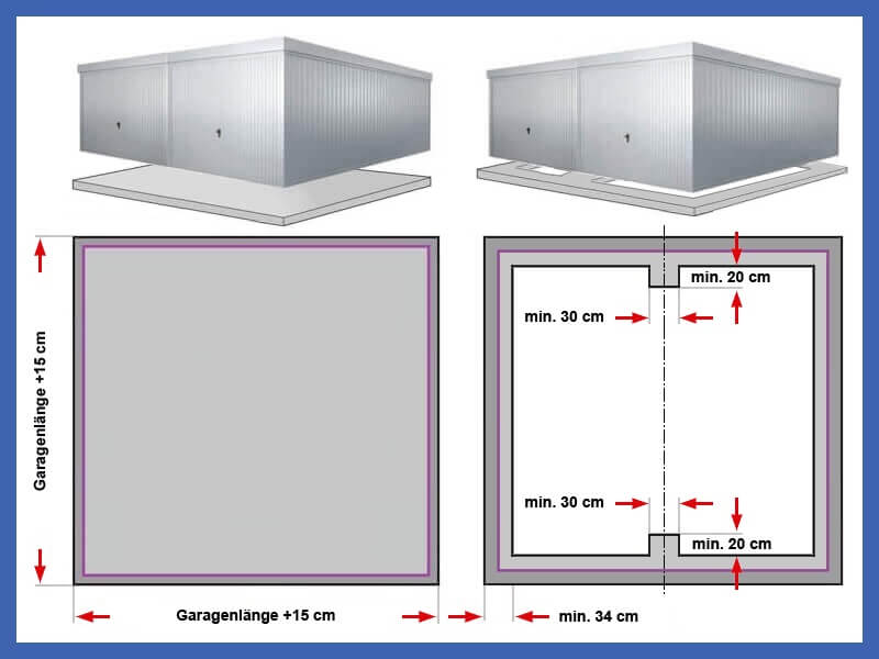Außerdem werden unsere Fertiggaragen, Metallgaragen, günstige Garagen ohne Boden geliefert. Es gibt verschiedene Fundament-arten die auf den jeweiligen Standort der Fertiggarage abgestimmt sind.