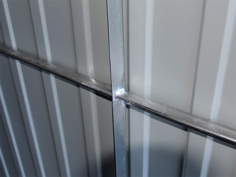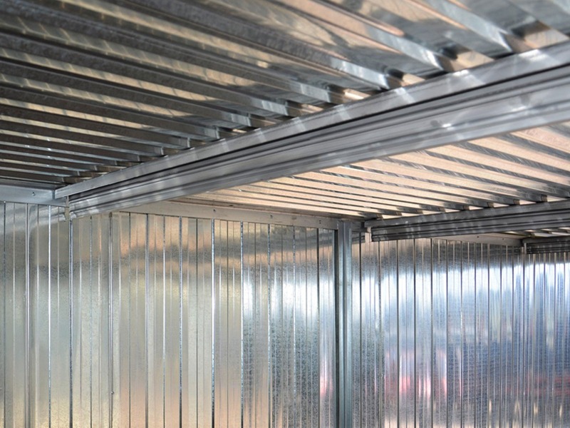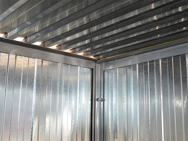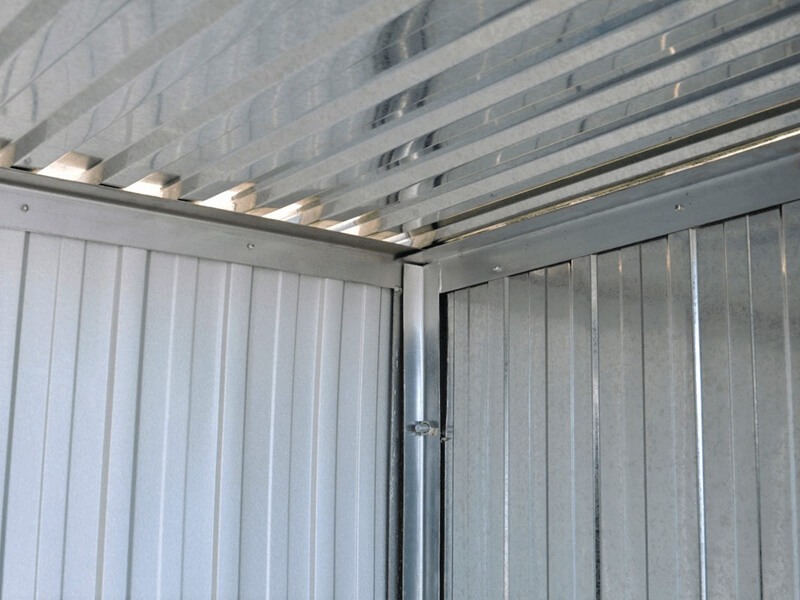 Wände aus verzinkten Blech mit senkrechten Trapezblech.