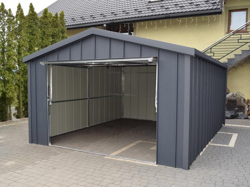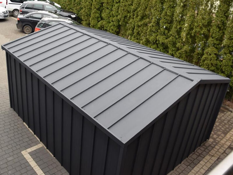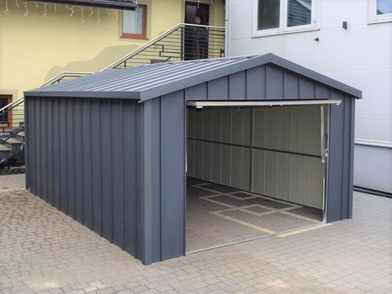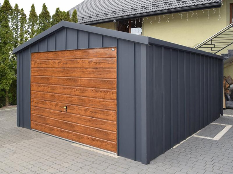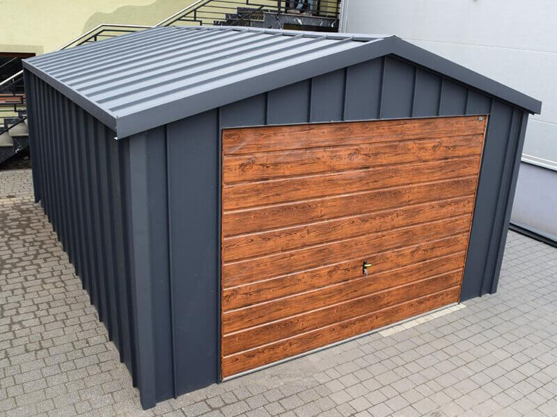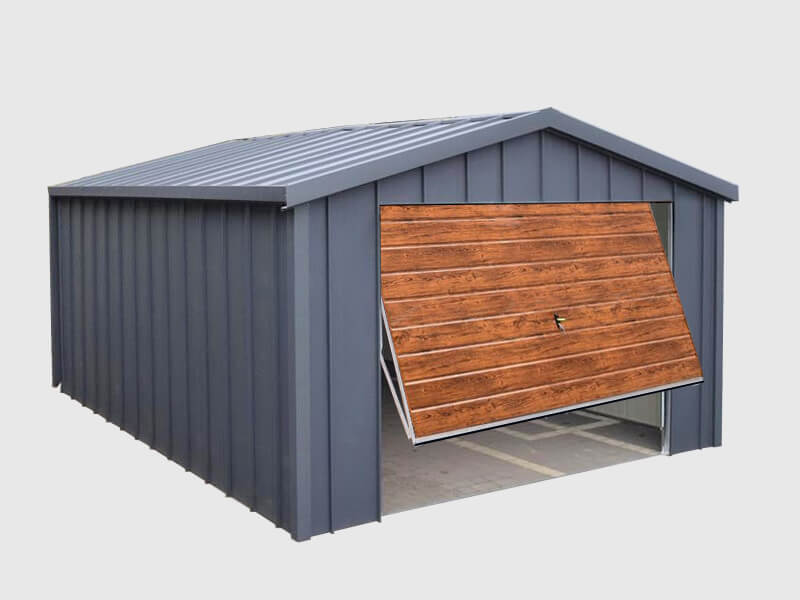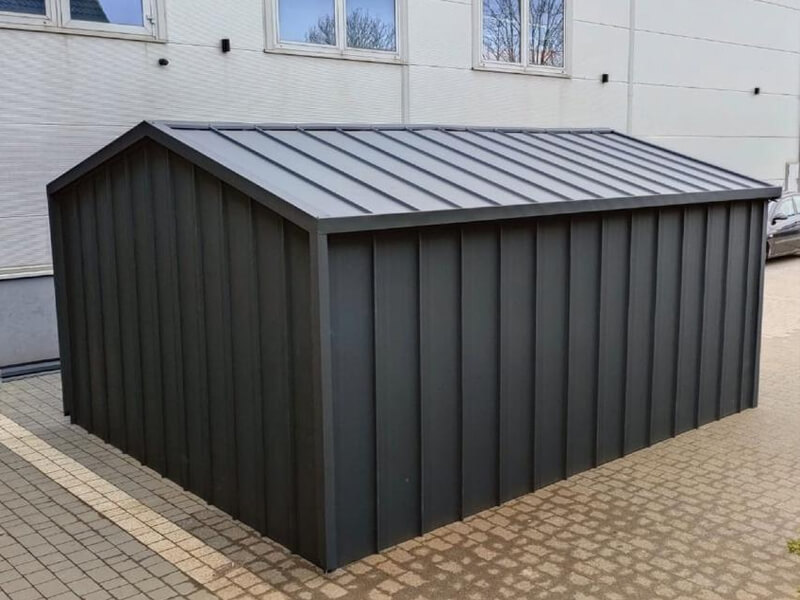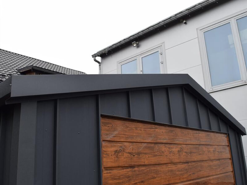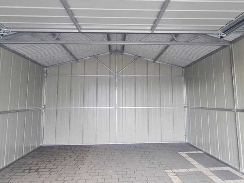 Fertiggarage aus Stehfalz Paneelen mit Schwingtor – Transport + Montage kostenlos