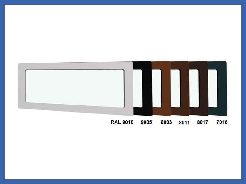 RAL 9010 Weiß, RAL 9005 Schwarz, RAL 8003 Lehmbraun,