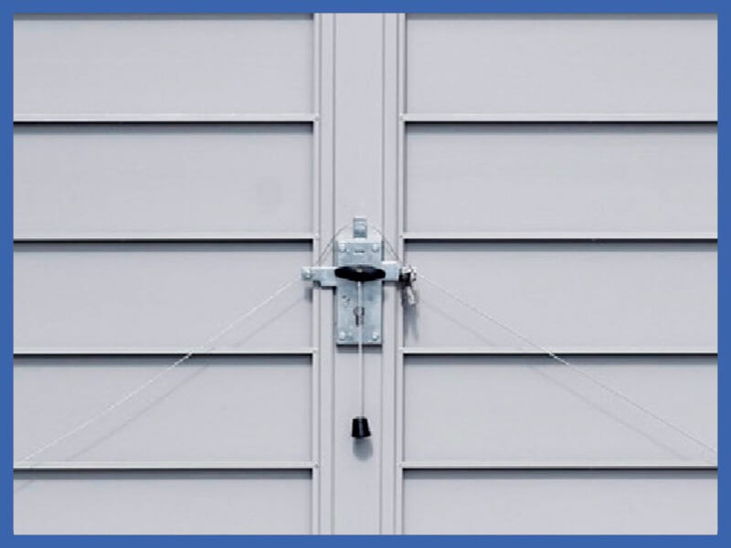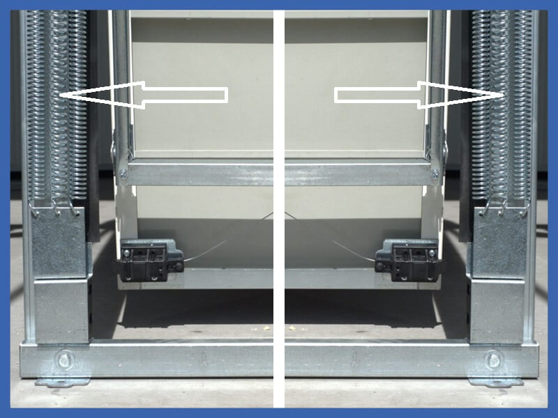 – Die untere Ecken der Flügel sind mittels Verriegelungen zu dem Rahmen links und rechts verriegelt.