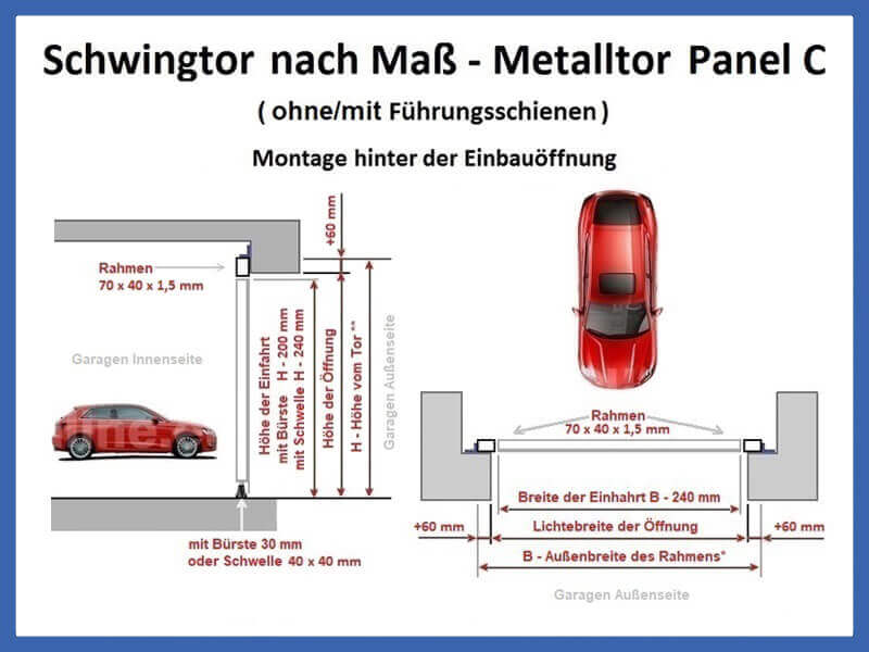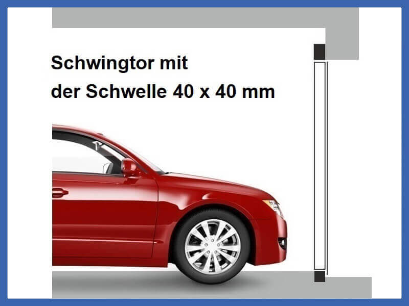 – Schwelle: 40 x 40 mm 1,5 mm stark geschlossene feuerverzinkte Stahlprofil oder Bürste 30 mm an unterer Kante des Torblattes